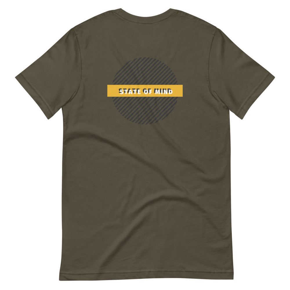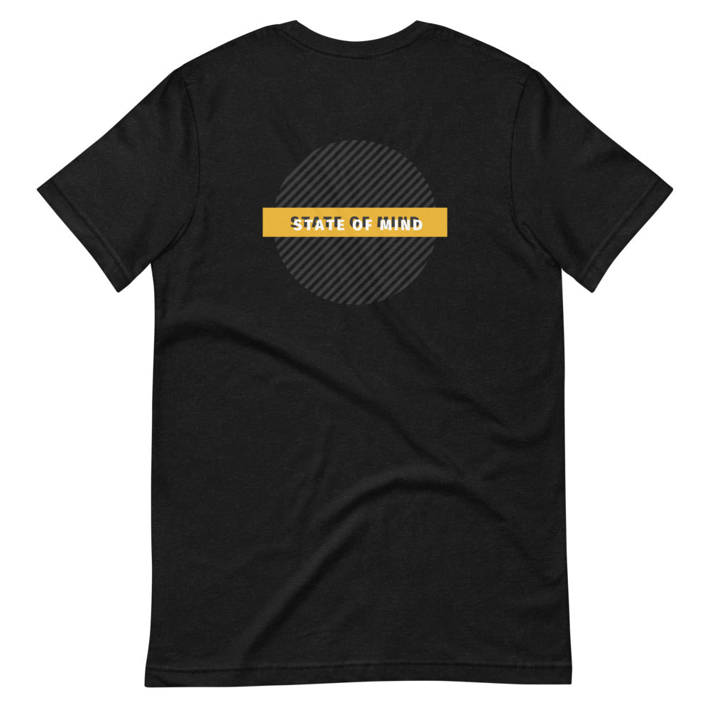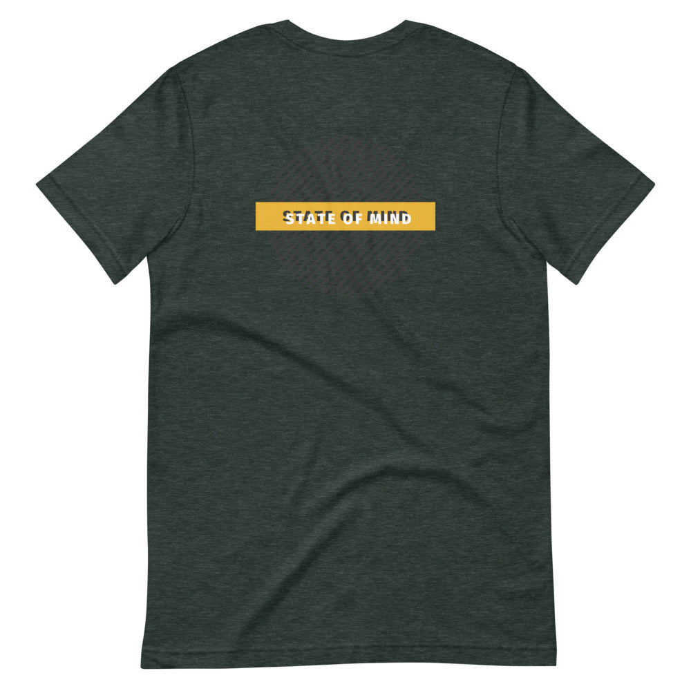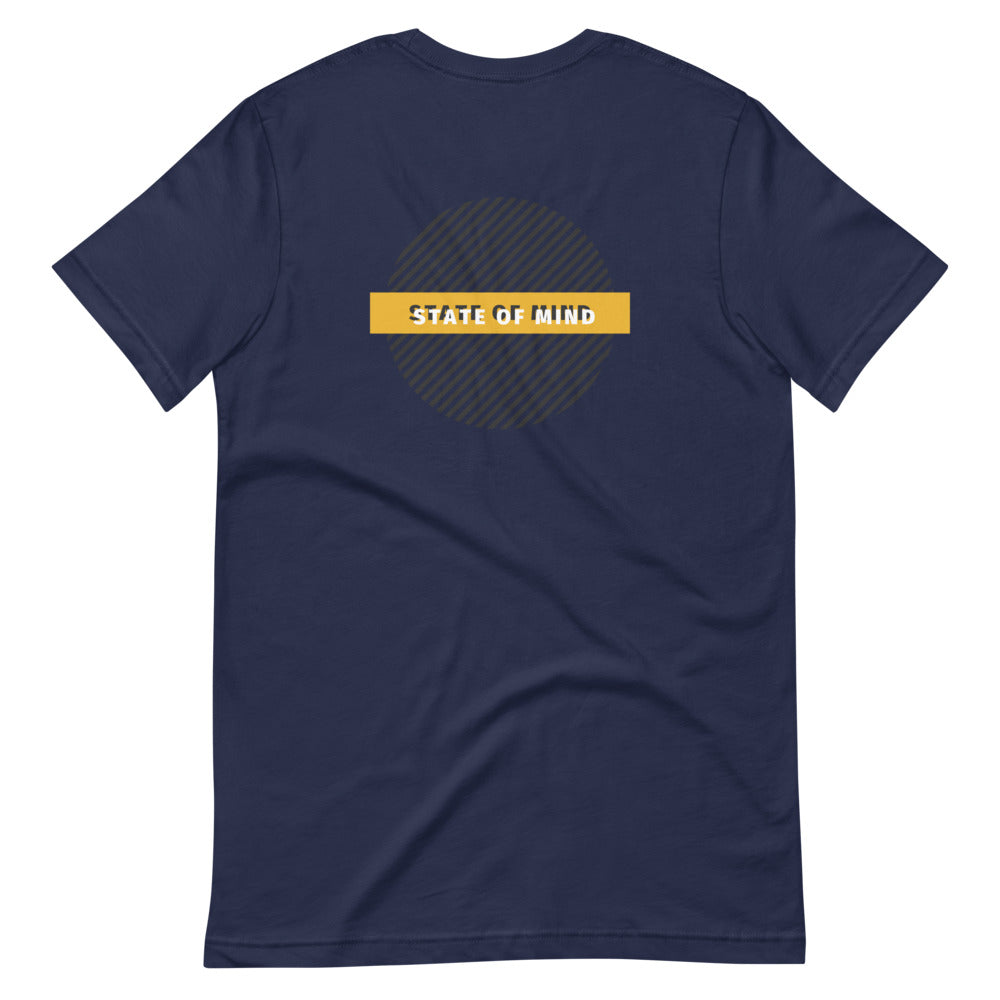 Circle design with State Of Mind Text. Simple and stands on its own. It feels soft and lightweight, with the right amount of stretch.