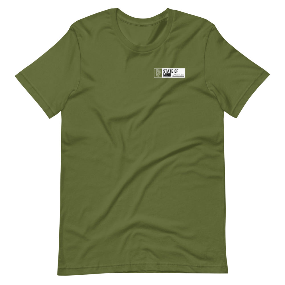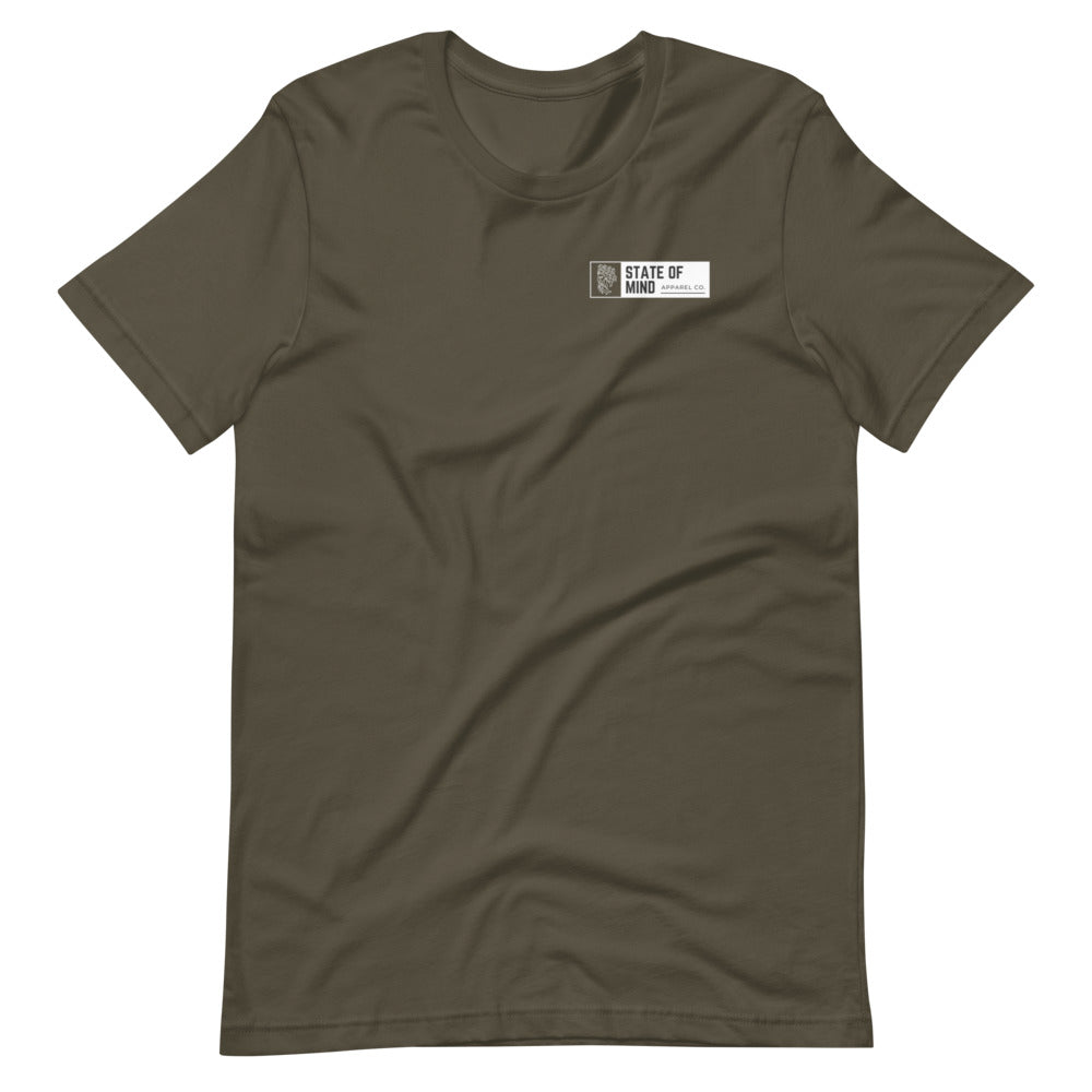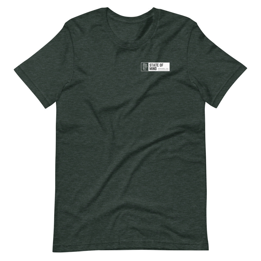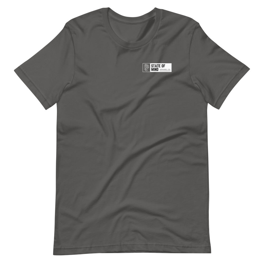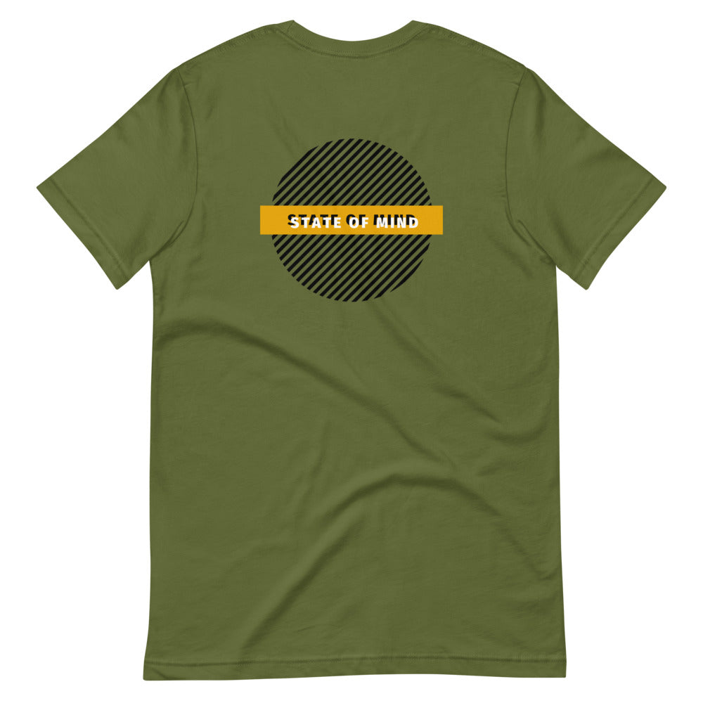 Circle design with State Of Mind Text. Simple and stands on its own. It feels soft and lightweight, with the right amount of stretch.
